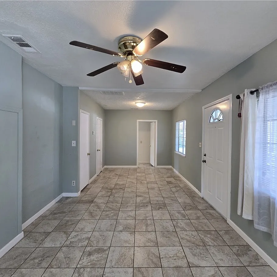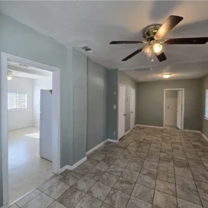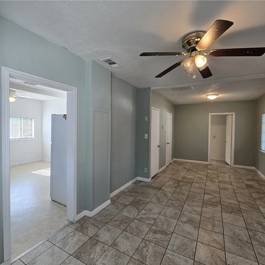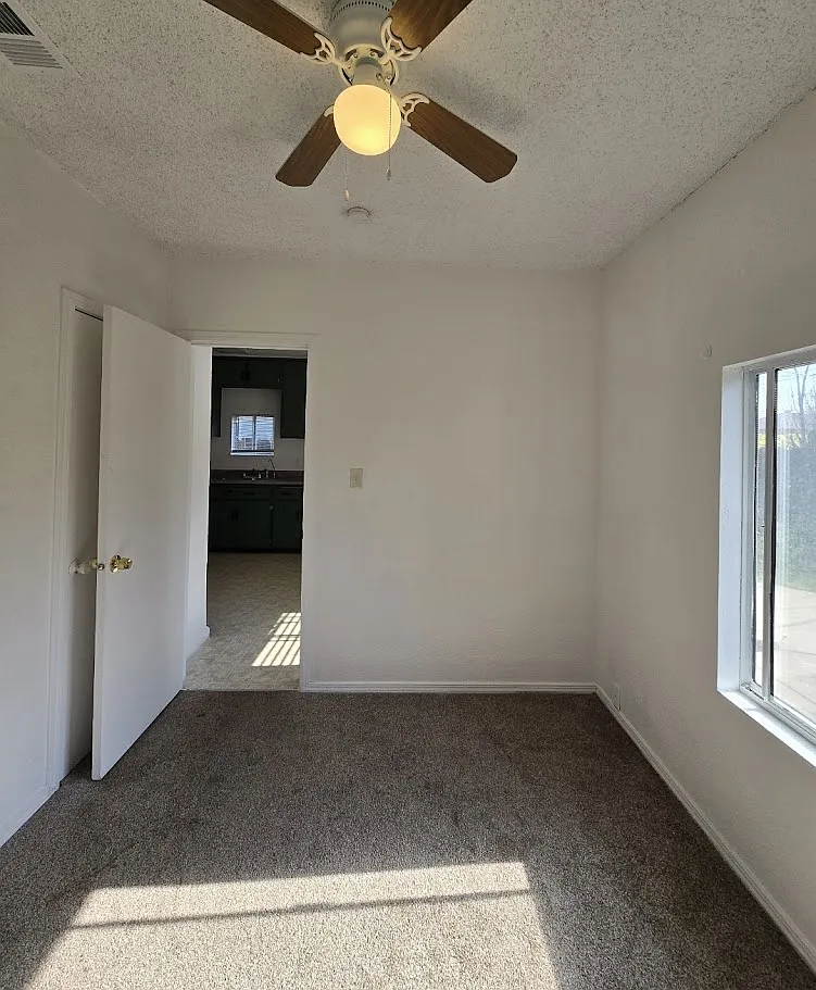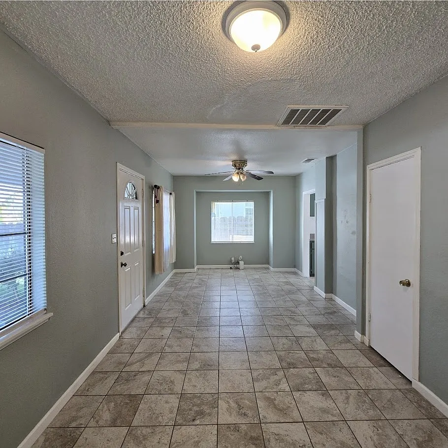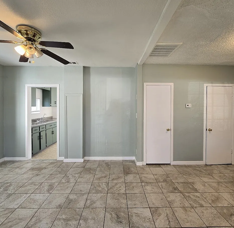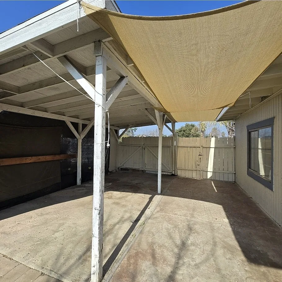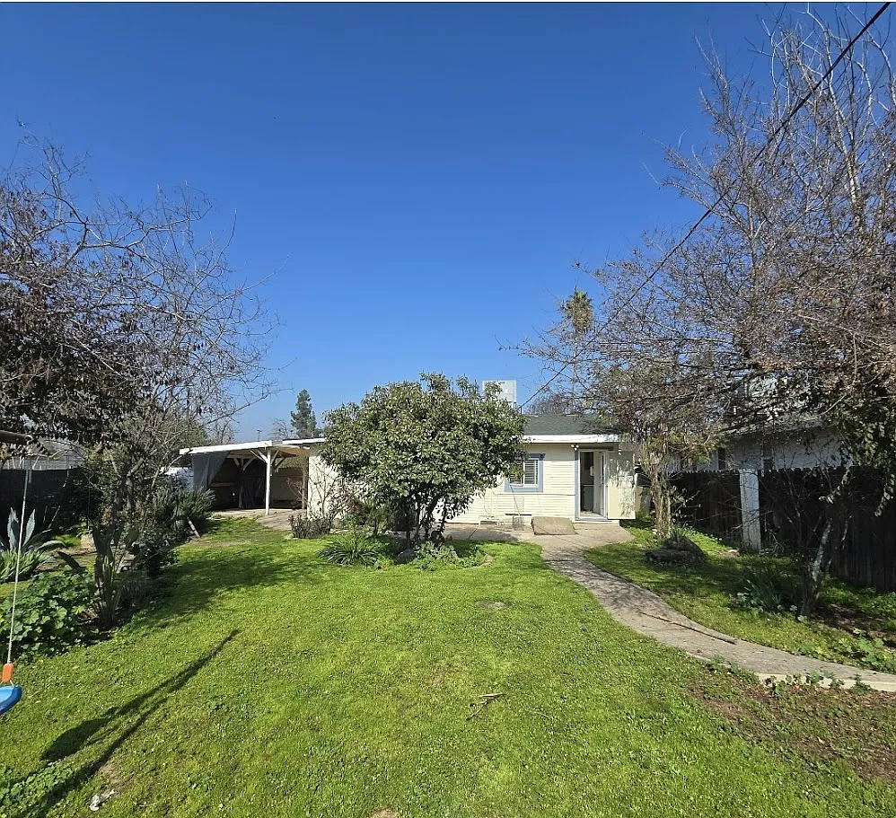 Charming 2/1 home with inviting curb appeal, boasting a delightful porch one bedroom features a unique step-down design from the living room, spacious kitchen, large laundry room outside with stamped concrete. nestled on a cul-de-sac,, Back yard boasts a walk way with stylish stamped concrete, Conveniently located near Fresno City College.