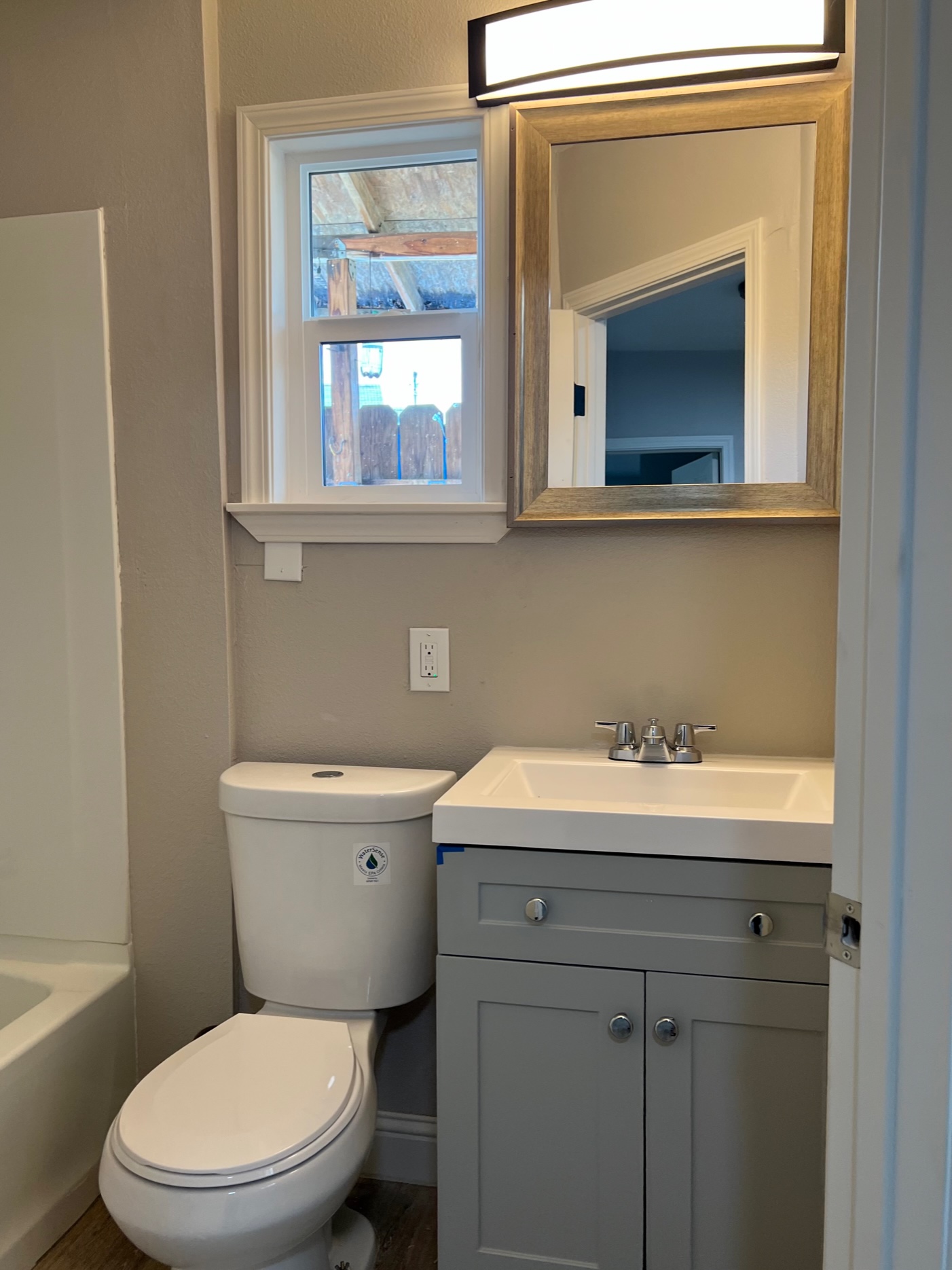 One Bedroom One Bathroom Back House with LVT/Laminate Flooring Through Out. Will Included Electrical Stove And Refrigerator Included. Has backyard. Wall Heater And Swamp Cooler.