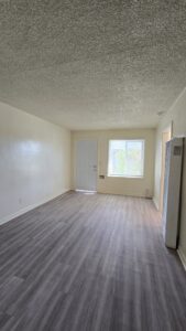 One bedroom One Bathroom Apartment in Fresno located off First and Clinton, swamp cooler and wall ac. Very spacious bedroom, living room. (AMENITIES AND FLOORING MAY DIFFER PER UNIT SIMILAR LAYOUT)