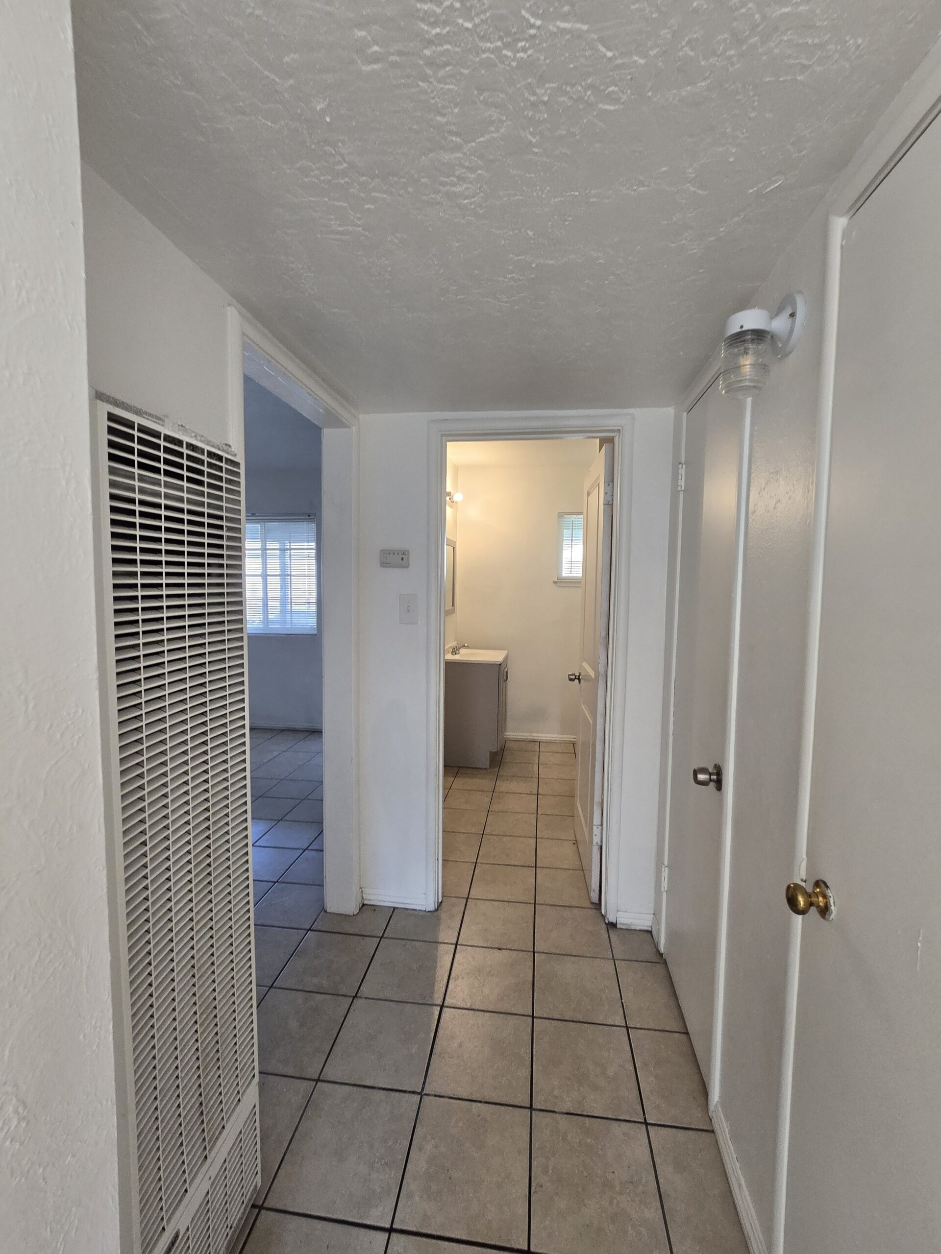 One-bedroom, one-bathroom apartment with wall heater, swamp cooler, refrigerator, and stove. One-car carport parking. Tile and LVT/laminate flooring.